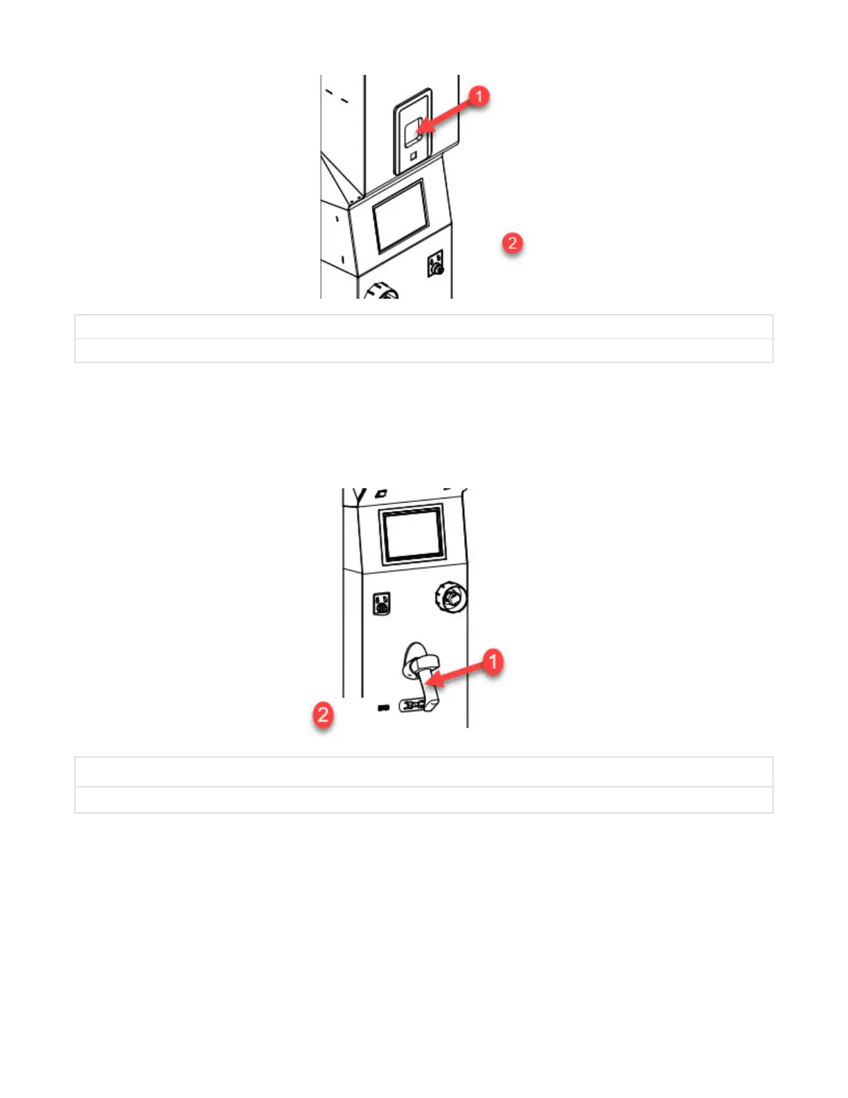 The bar code reader (accessory) is located next to washer/disinfector load door, under Emergency Stop pushbutton.