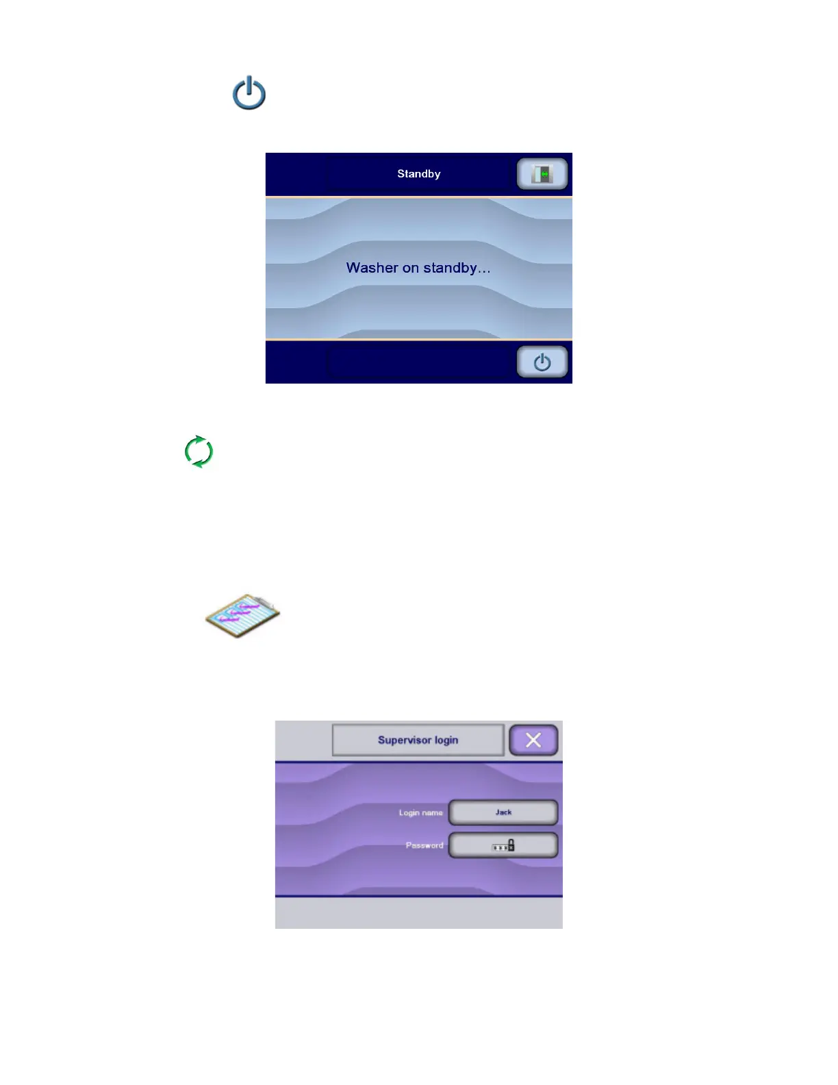 on touch screen puts the washer/ disinfector in Standby mode for low energy