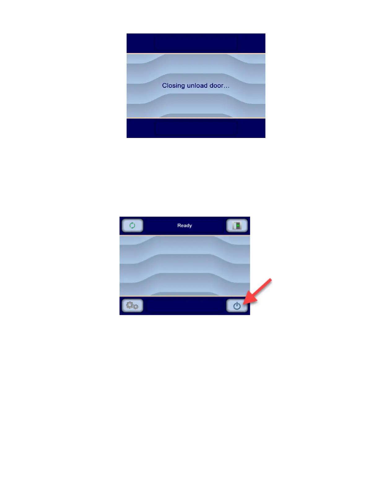 Press Standby/Restore on touch screen. Display shows Standby Confirmation screen: