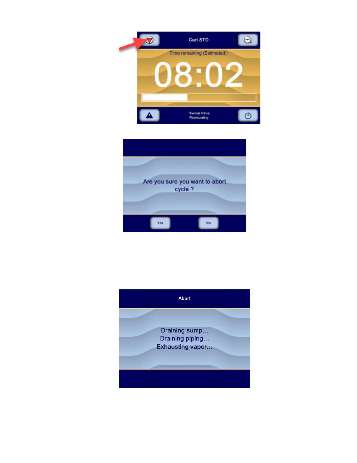 IMPORTANT: If a cycle is aborted before the Thermal Rinse phase is completed, a supervisor may need to enter login