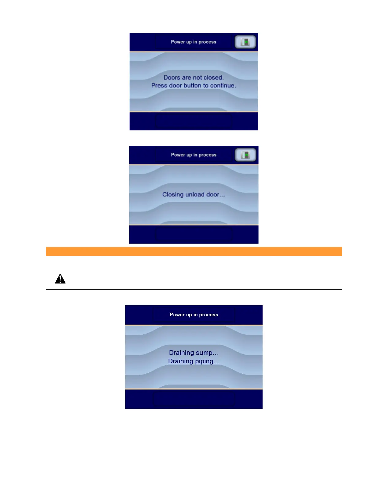 4. Sump, piping and reservoirs are drained, if required. Display shows, for example: