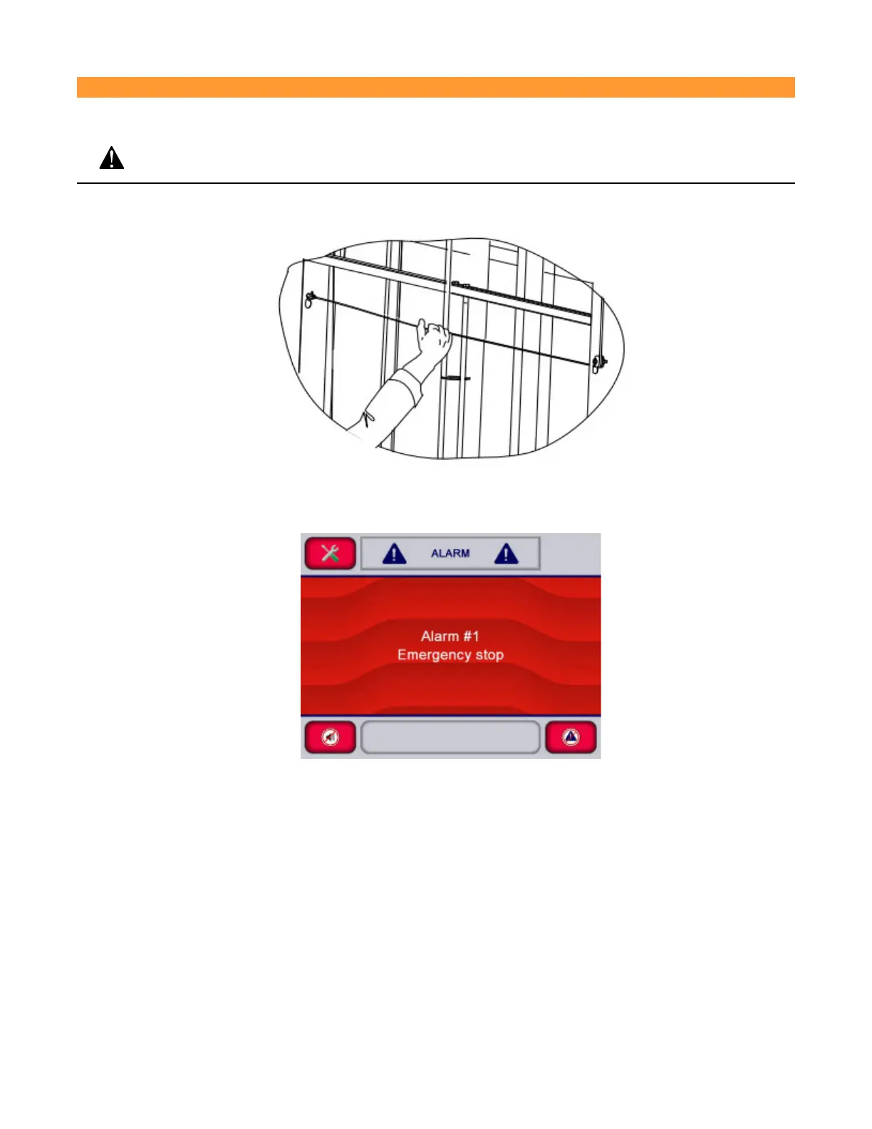 1. When inside chamber, in case of an emergency situation, pull emergency stop cable located on either side of the