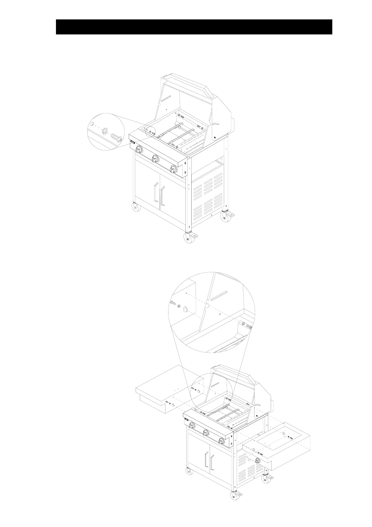 Step 8: Assemble the side shelf and the side burner with eight (8) pcs 1/4”*10mm screws as