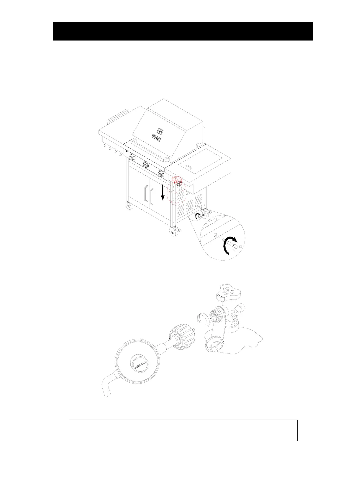 CAUTION! ASSEMBLY TO PROPANE TANK.DO NOT USE TOOLS TO ATTACH