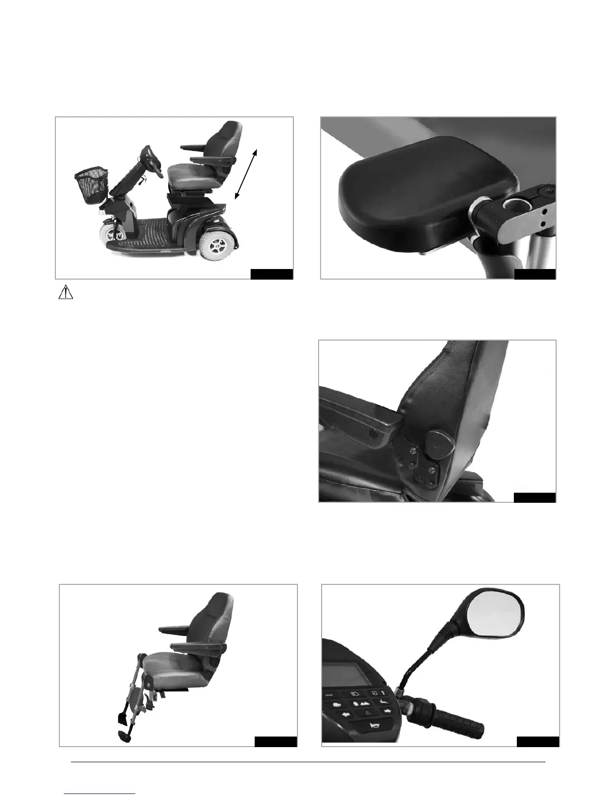 When the seat lift is raised the stability of the scooter •