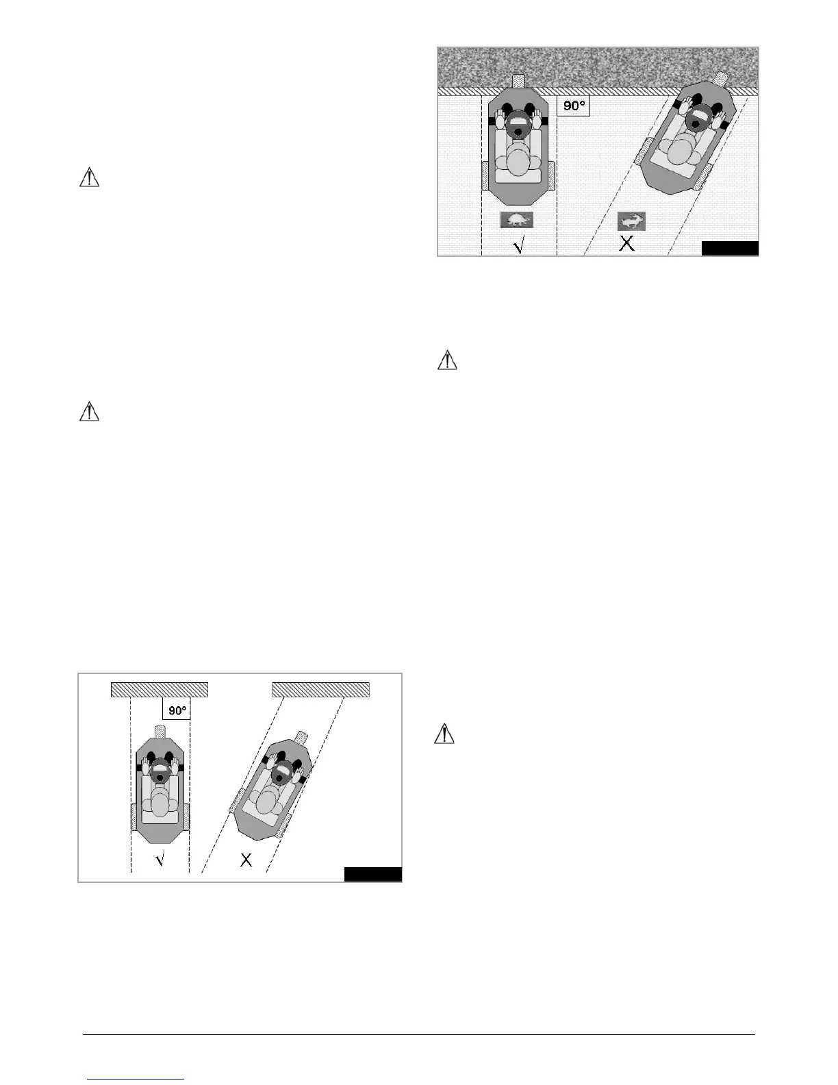 Do not travel along a sloping surface leading to an •