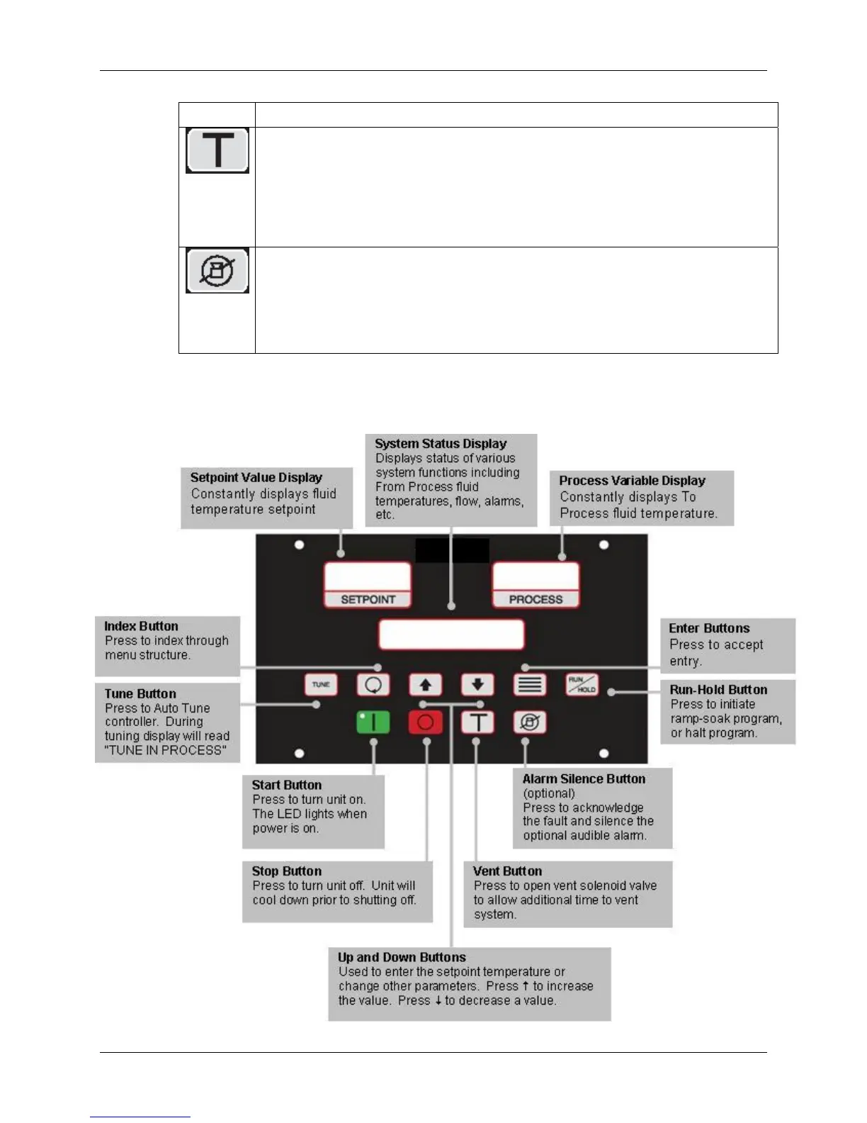 • Turns off the Alarm 1 Output. The cause of the alarm will continue to appear in LCD
