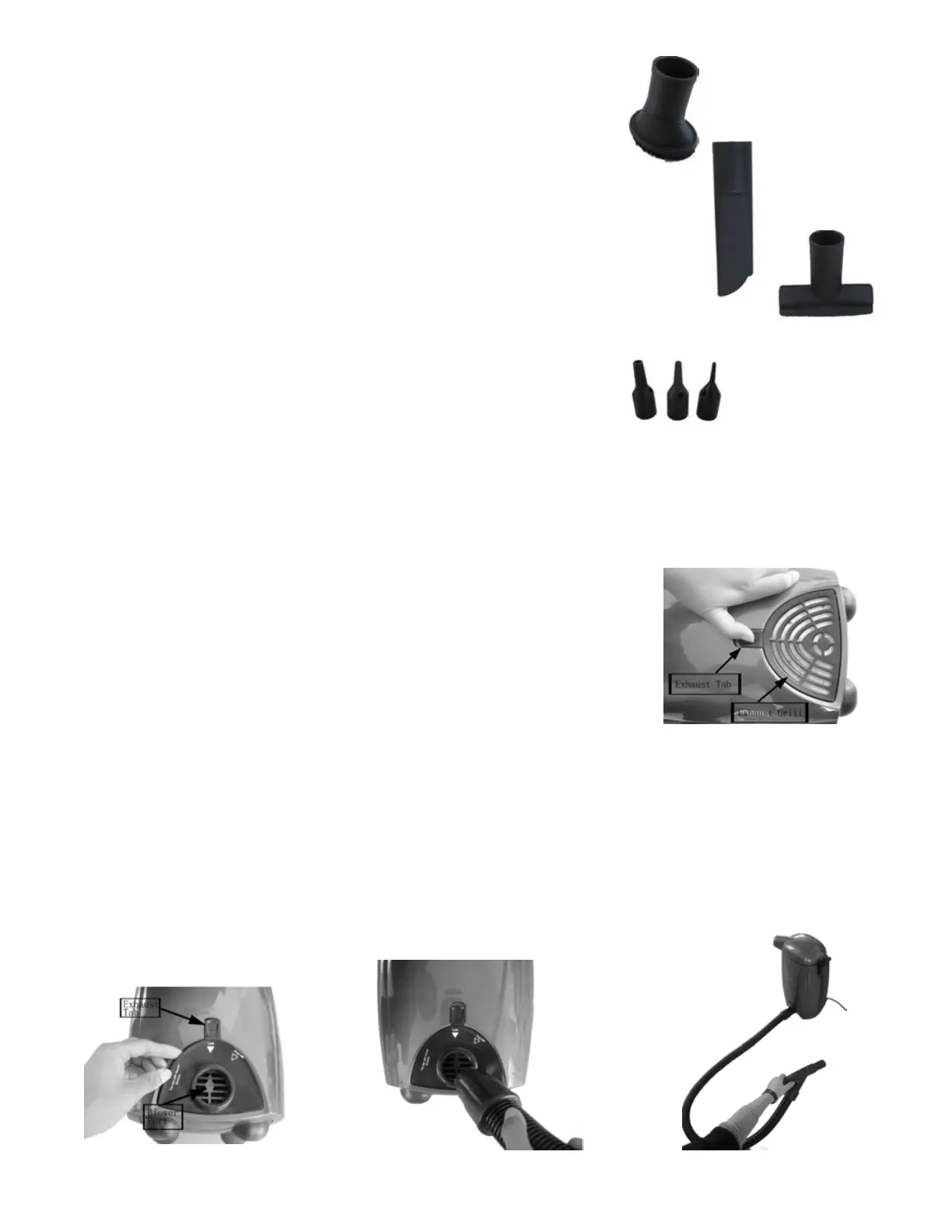 port with the slots on the exhaust. Pull up on the exhaust tab and push the top of