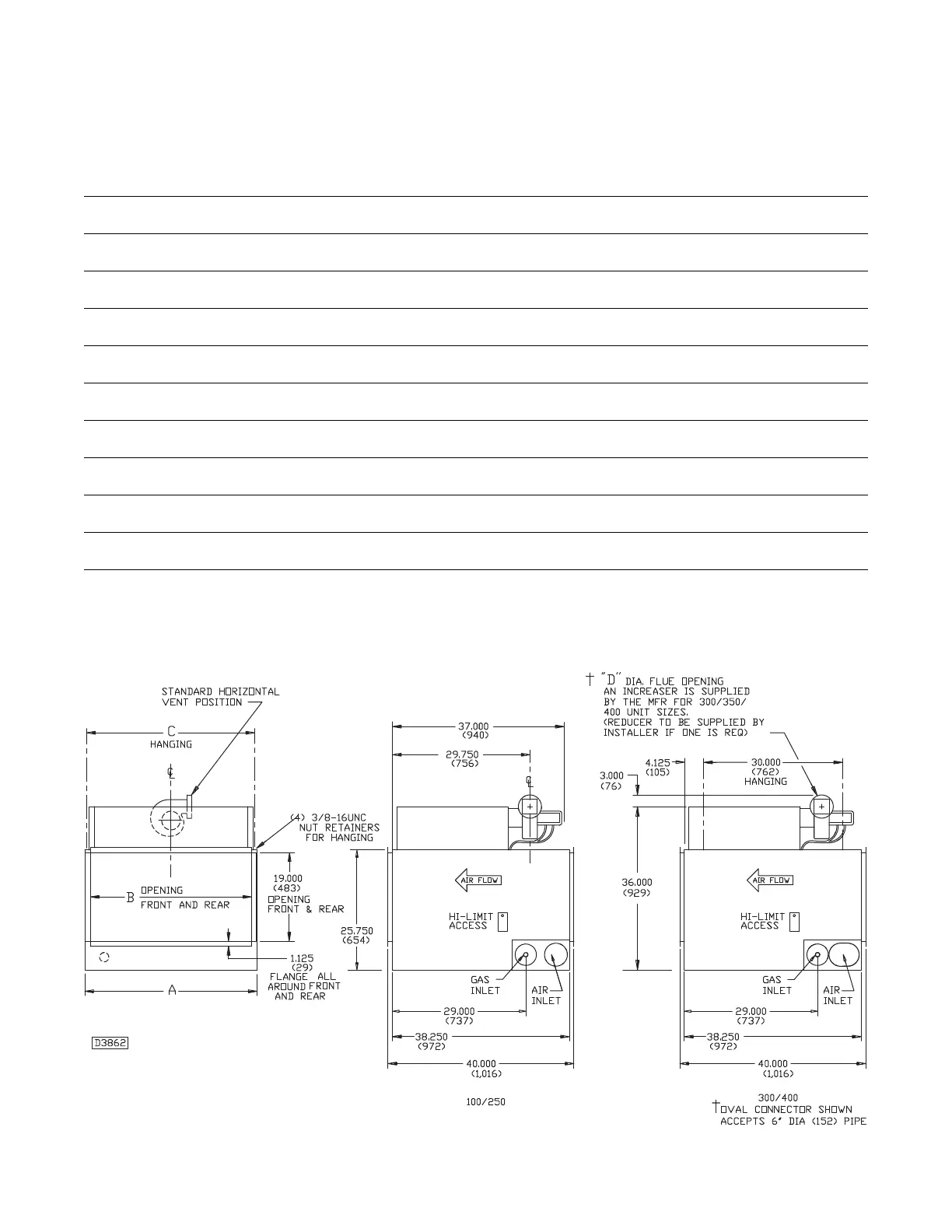 †NOTE: “D” dia. equals the air inlet opening and the fl ue discharge opening.