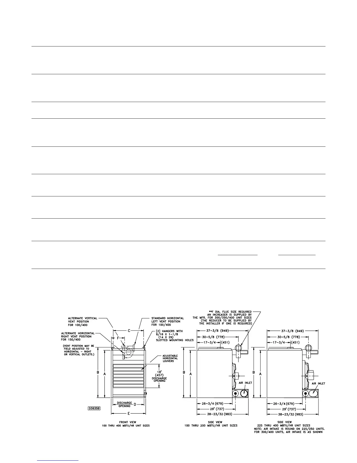 Table 1 – Performance and Specifi cation Data – Separated Combustion Propeller Unit heater