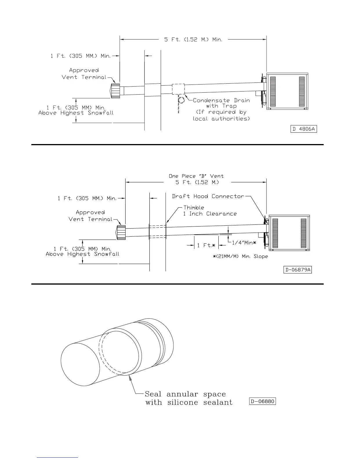 Figure 15A - Category III Horizontal Venting Requirements Using Type B Double Wall Vent Pipe