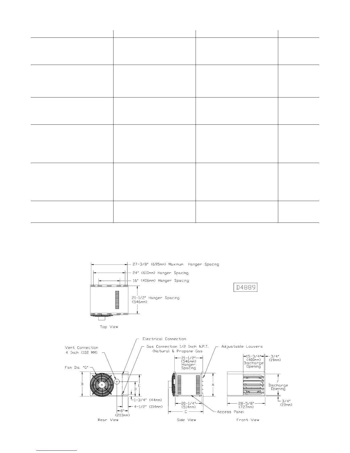 Figure 2 - Dimensional Drawing – Tubular 30 thru 90 Propeller Unit Heater