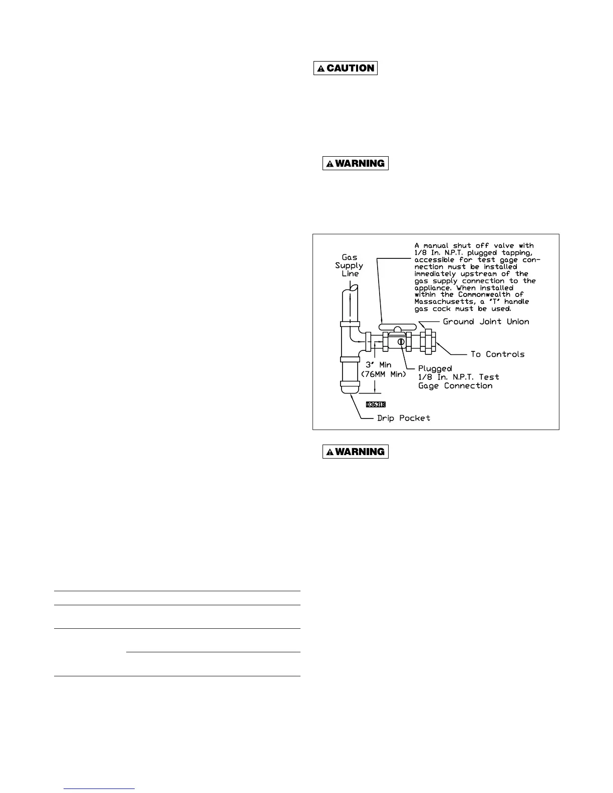 7. Provide a drip leg in the gas piping near the gas