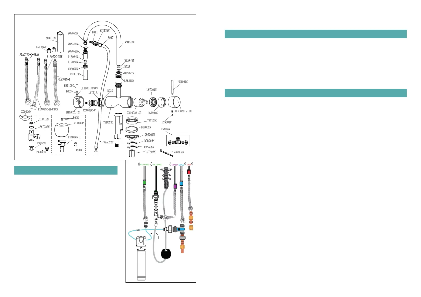 Attached the tails to the relevant colour coded rigid pipes, use the diagram for further reference.