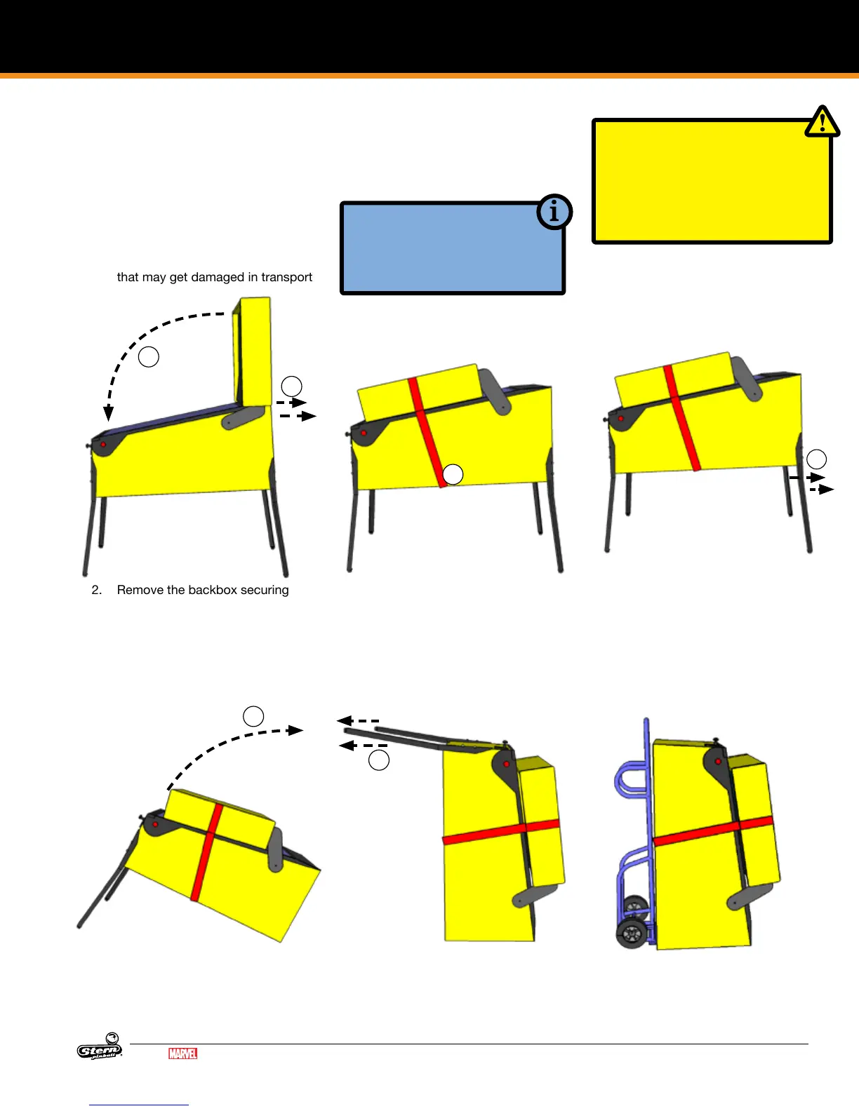 game’s backbox must be secured to prevent damage to the side rails.