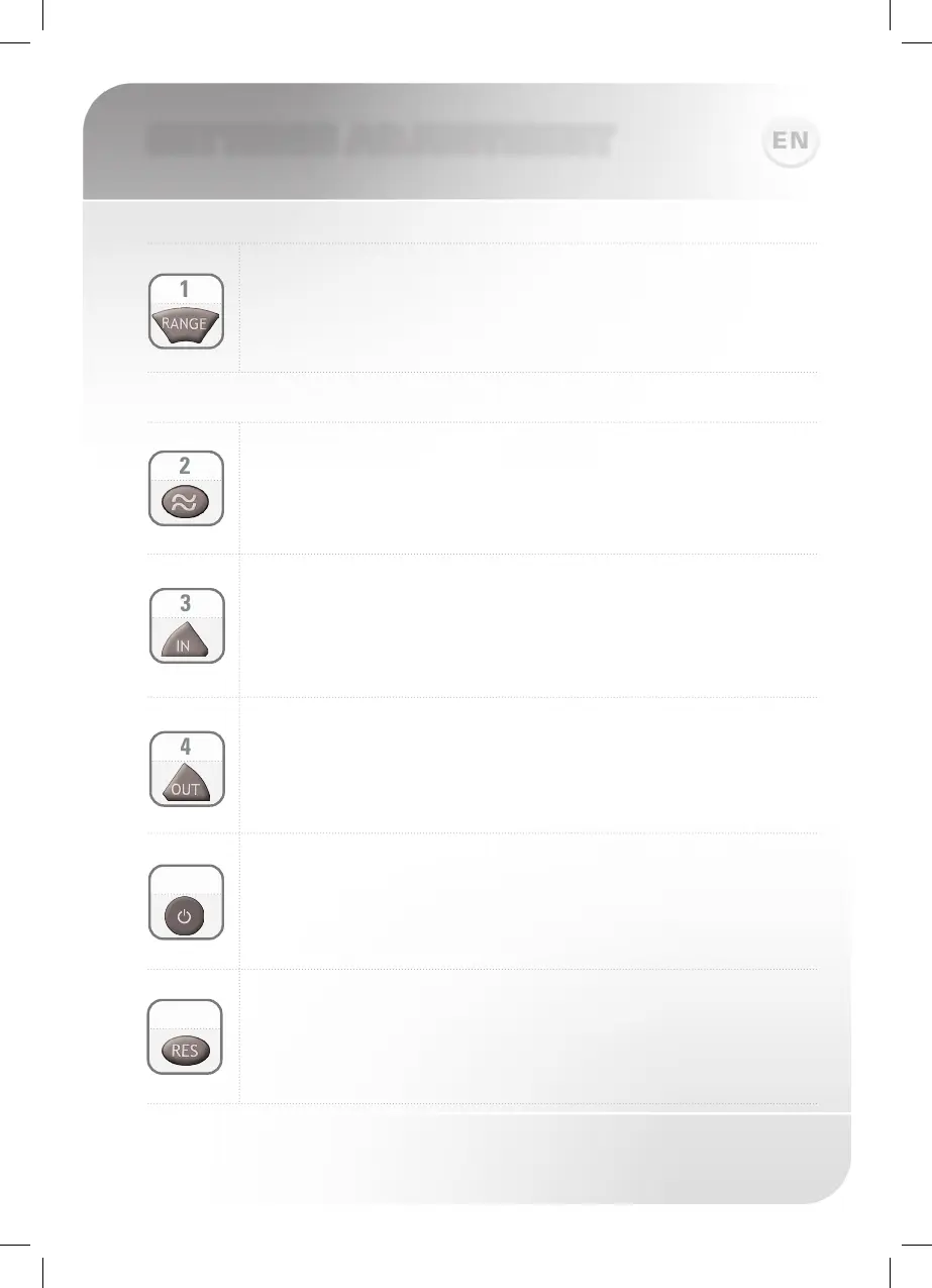 RANGE: Press + to increase the detection range and – to decrease
