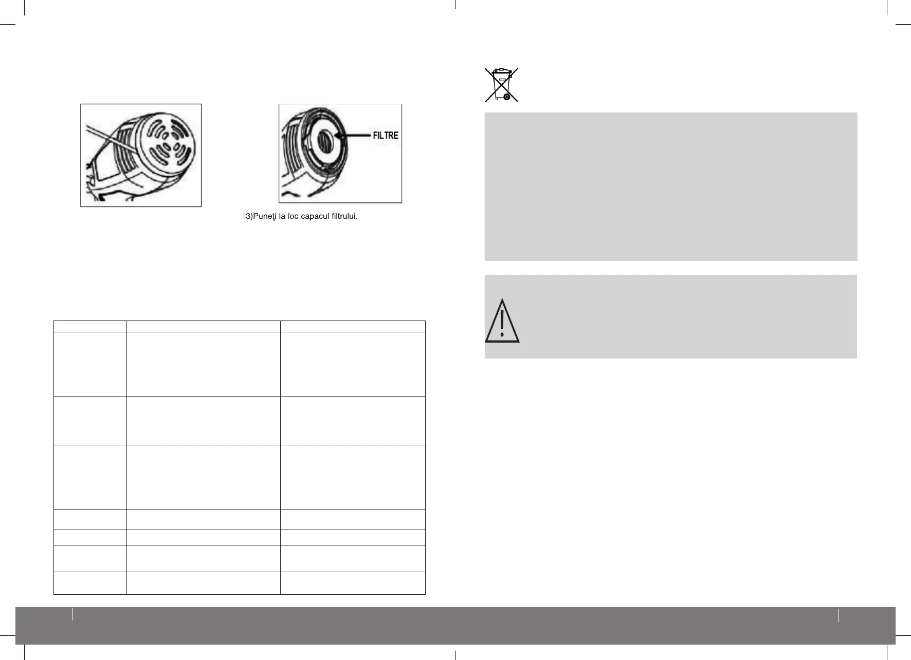 2) Înlocuiţi filtrele murdare cu unele noi.