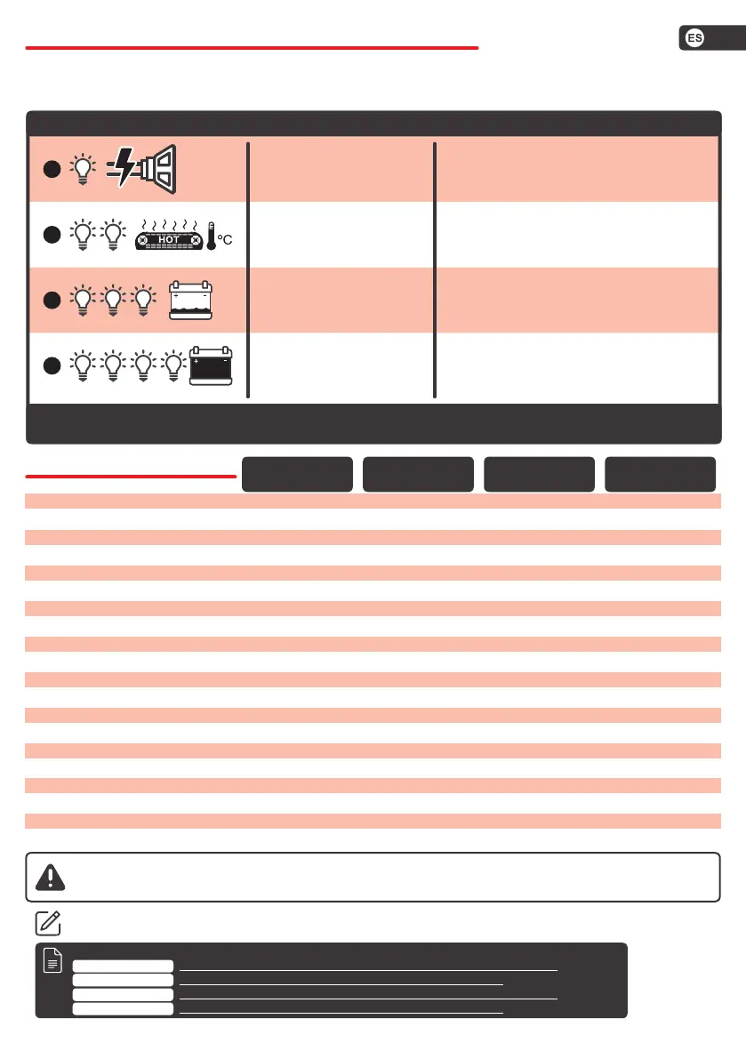 del problema, la luz LED ROJA (PROT) parpadeará un cierto número de veces. En la siguiente tabla se resumen los