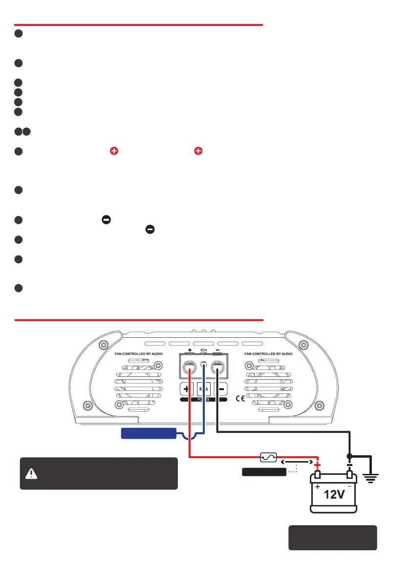 GROUND CONNECTION : Use a cable with a gauge of at least 4 AWG. Connect the cable to the chassis of the vehicle.