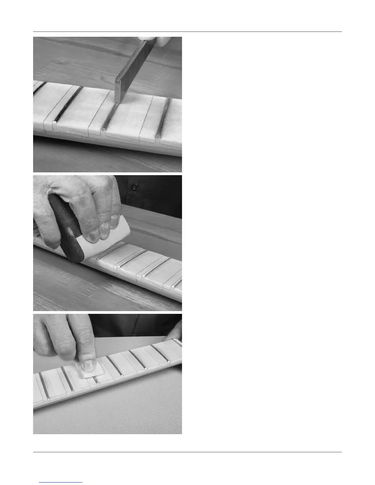 lacquer from the frets, and polish them to a smooth finish.