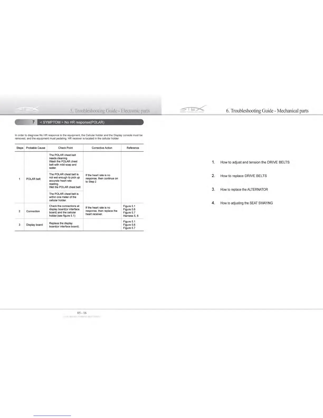 stex 8020RX - Heart Rate Response Issues (POLAR); STEX Bike Mechanical Parts Troubleshooting