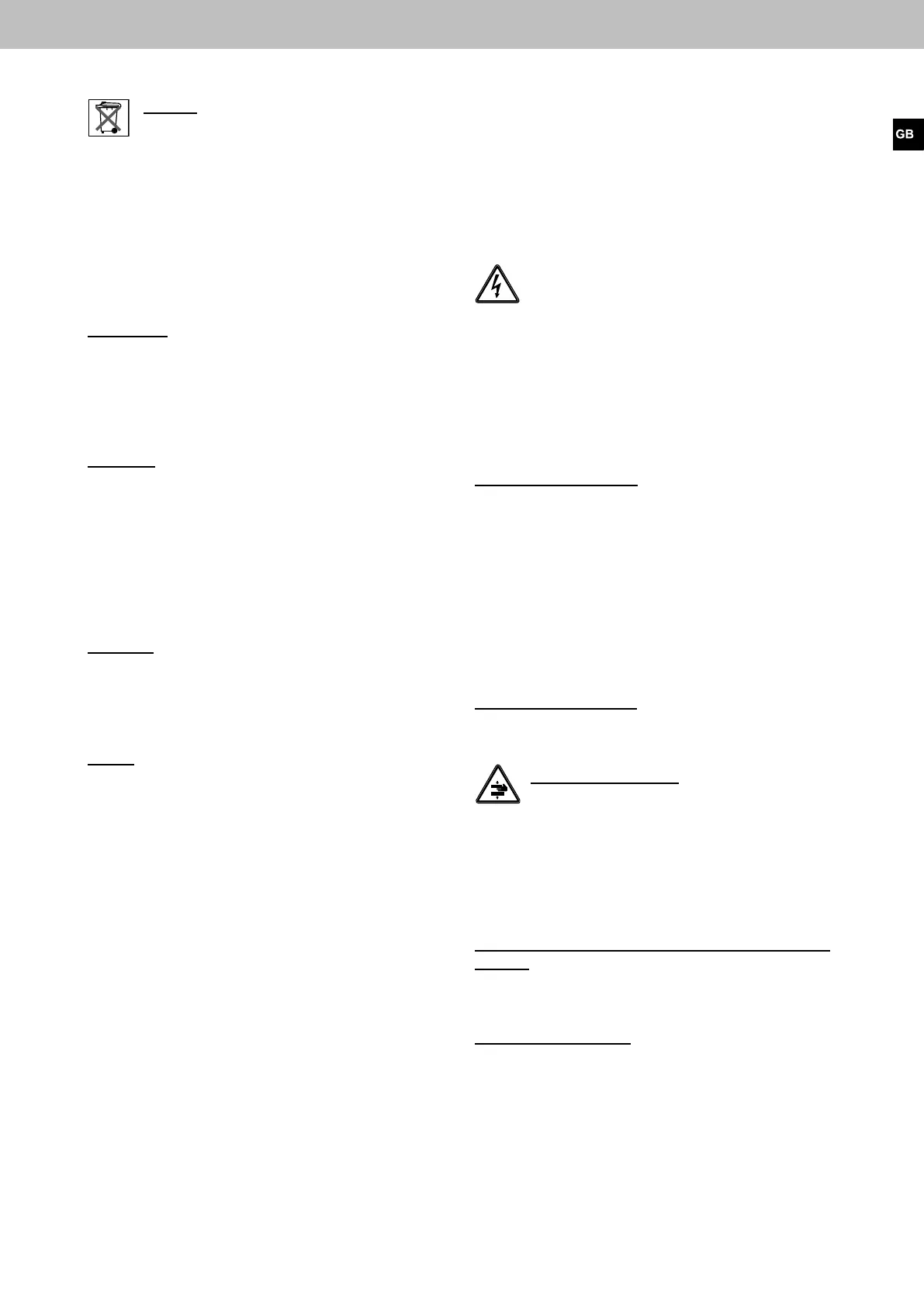 appropriately. Electrical equipment is to be dis-