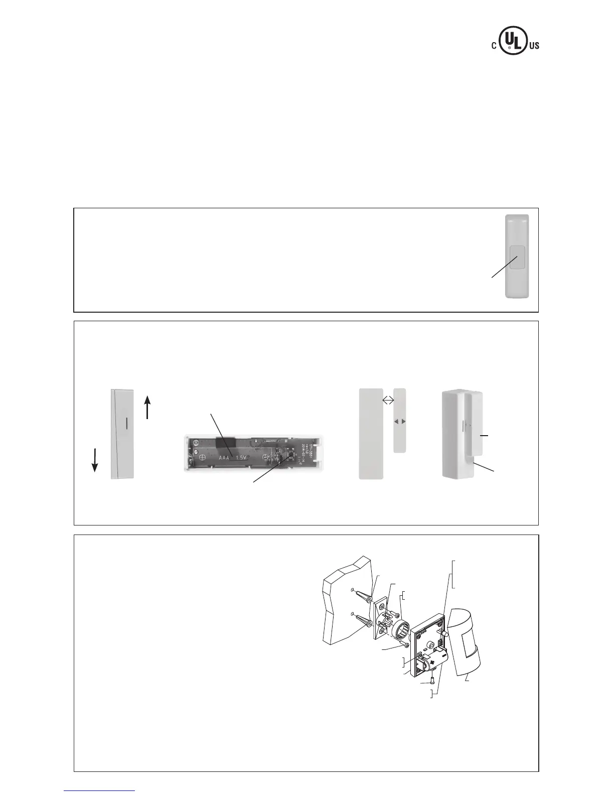 Installation de la batterie – Ouvrez le capteur et insérez la batterie tel que montré ci-dessous.