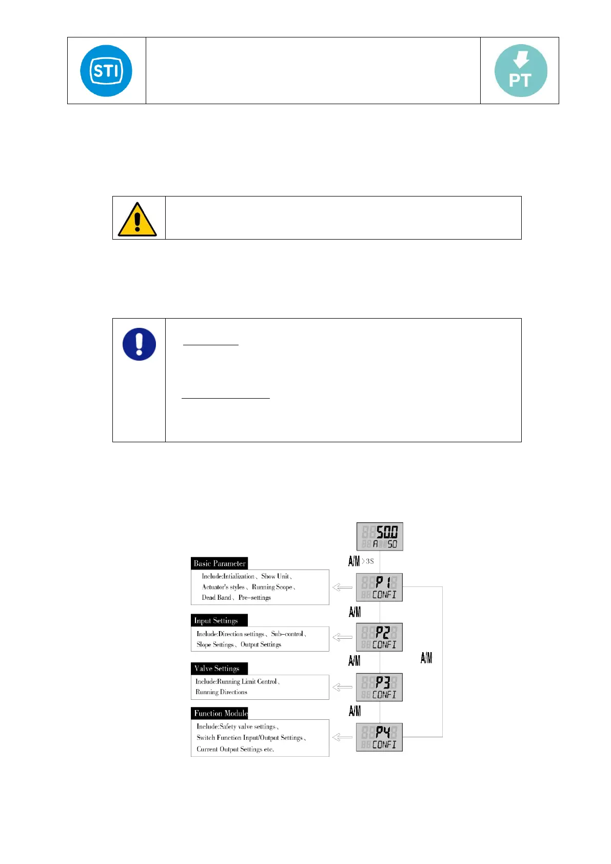 In the normal mode, press button “A/M” for at least 3 seconds, to enter in Configuration Mode.