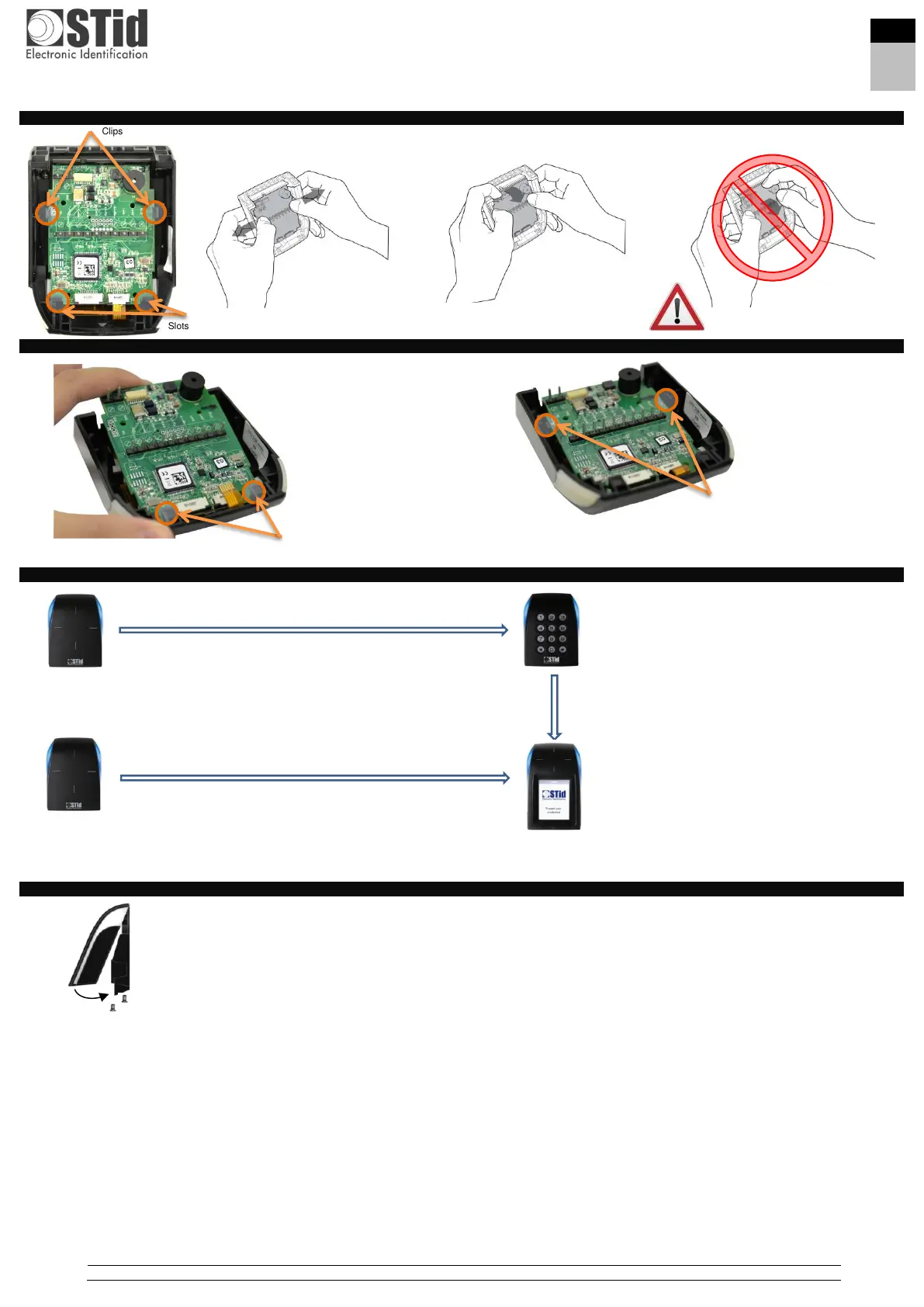Stid ARCS-A/BT1 - Removing the Core from the Front Cover; Installing the Core into the Front Part; Changing the Front Part; Mounting Procedure