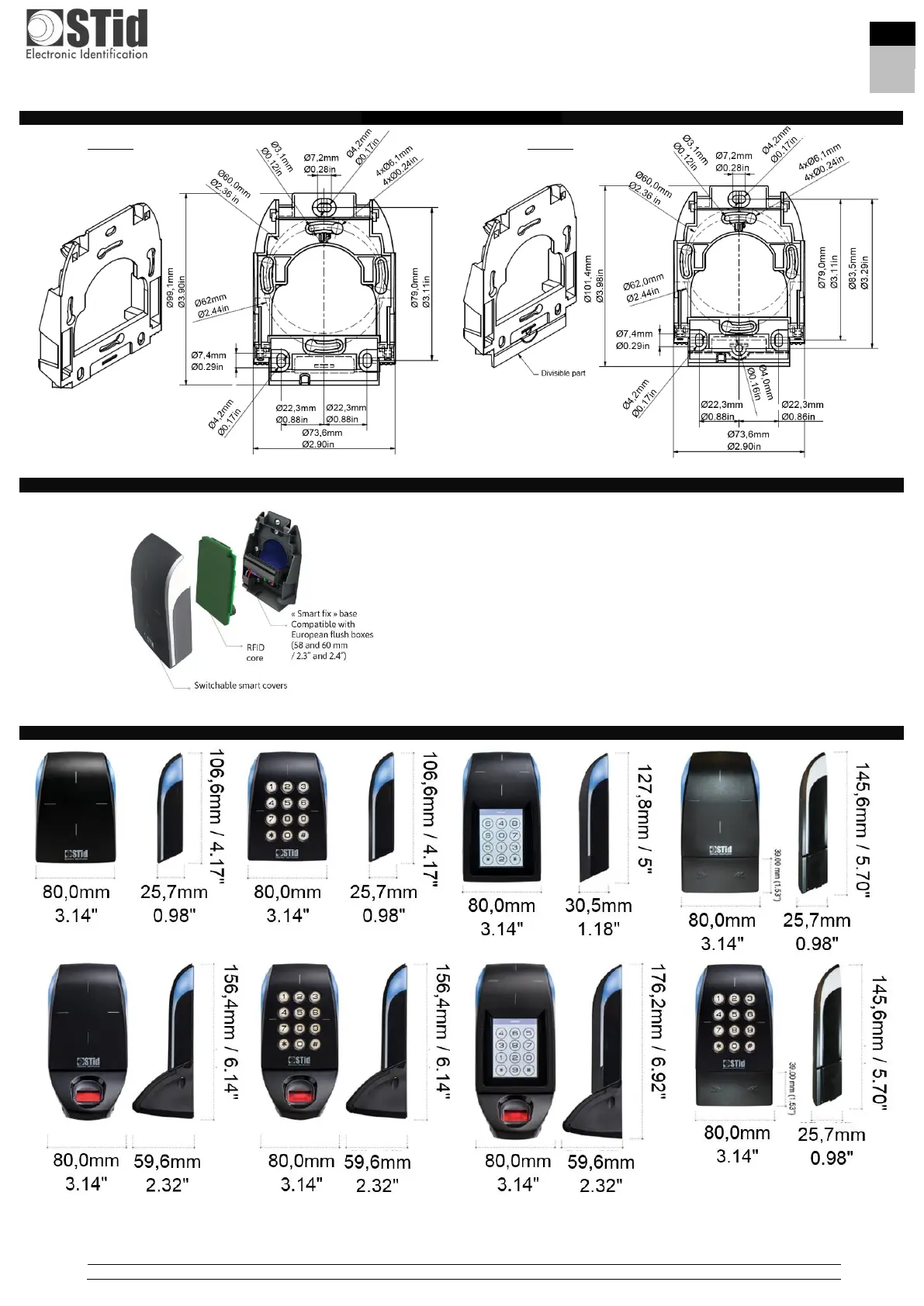 Stid ARCS-B/BT1 - Physical Specifications and Scalability; Smart Mounting Plate Dimensions; Reader Dimensions