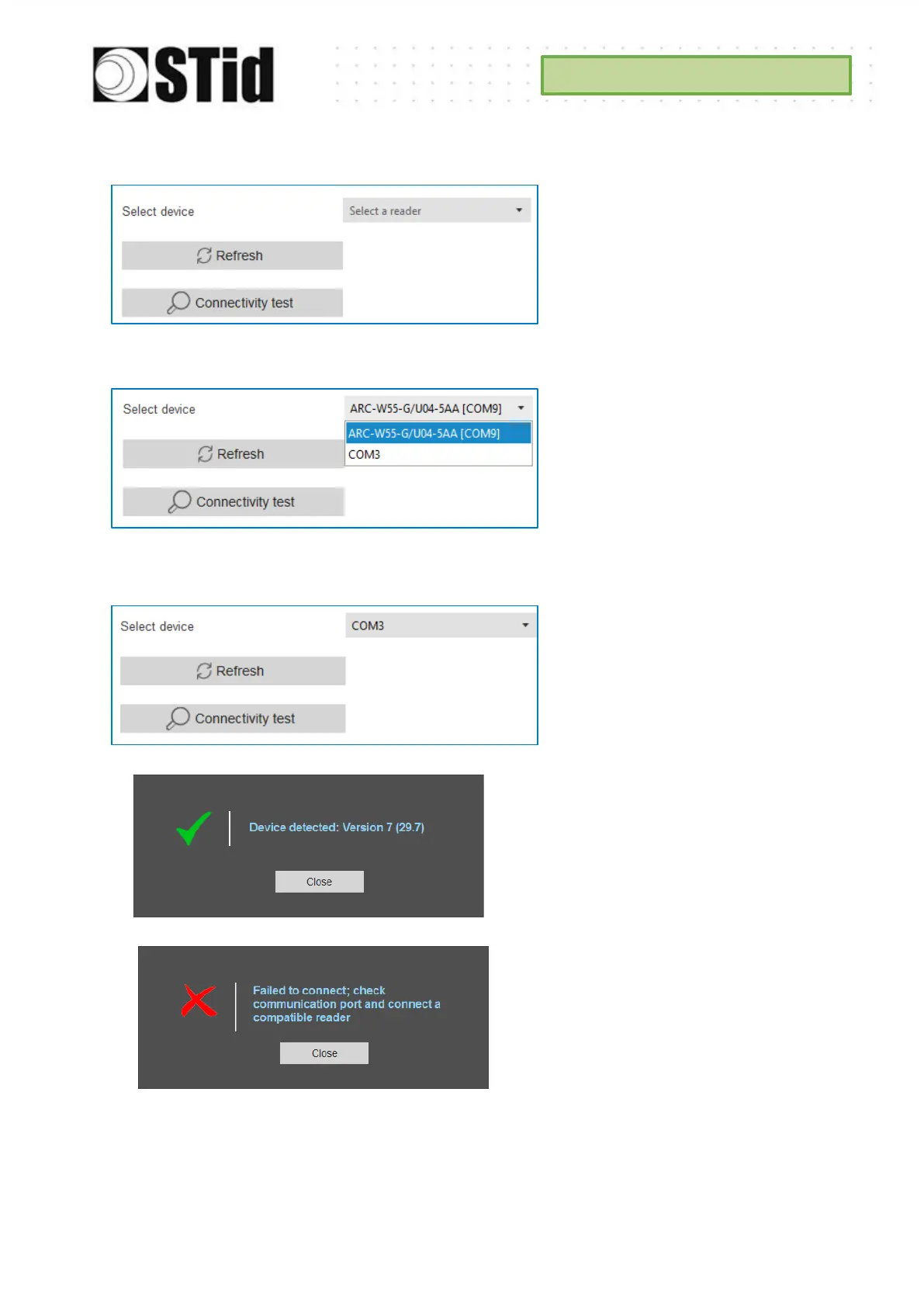 Note: during the connectivity test on a UHF encoder, a sound and light signal (orange) will be