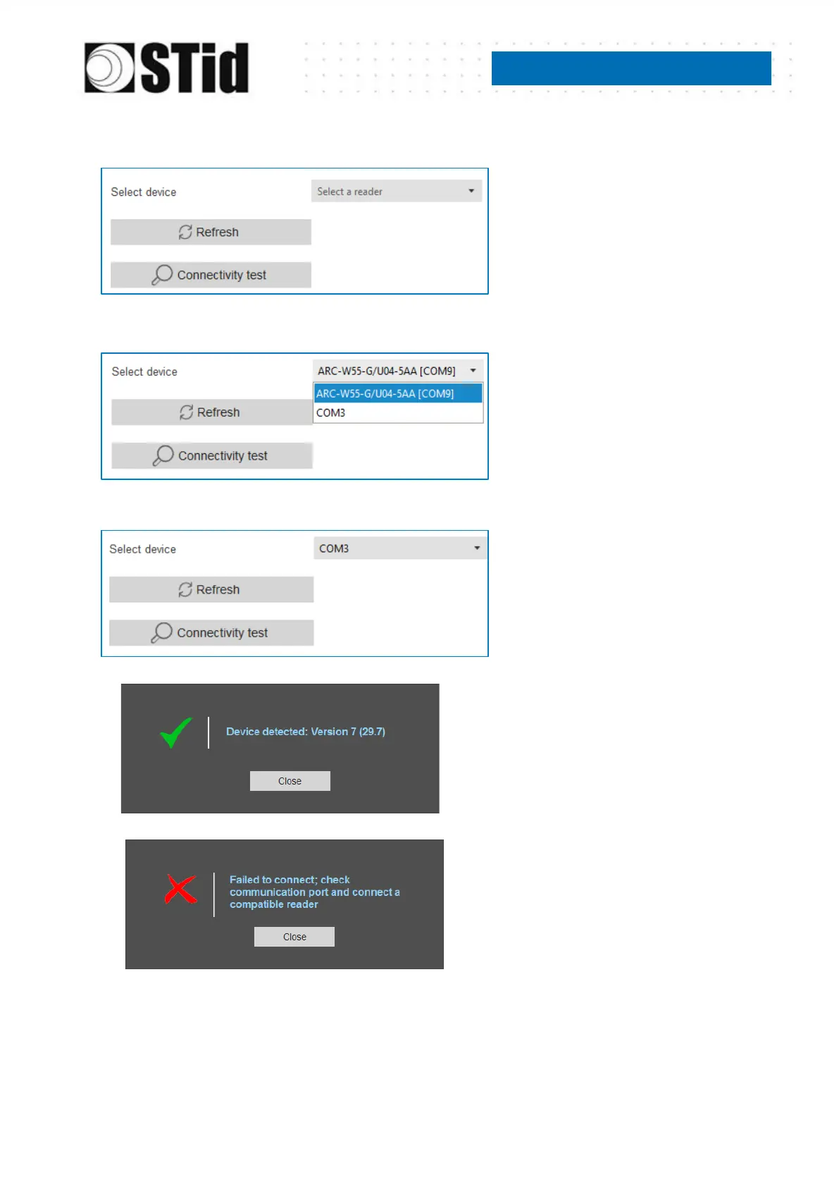 Note: during the connectivity test on a UHF encoder, a sound and light signal (orange) will be