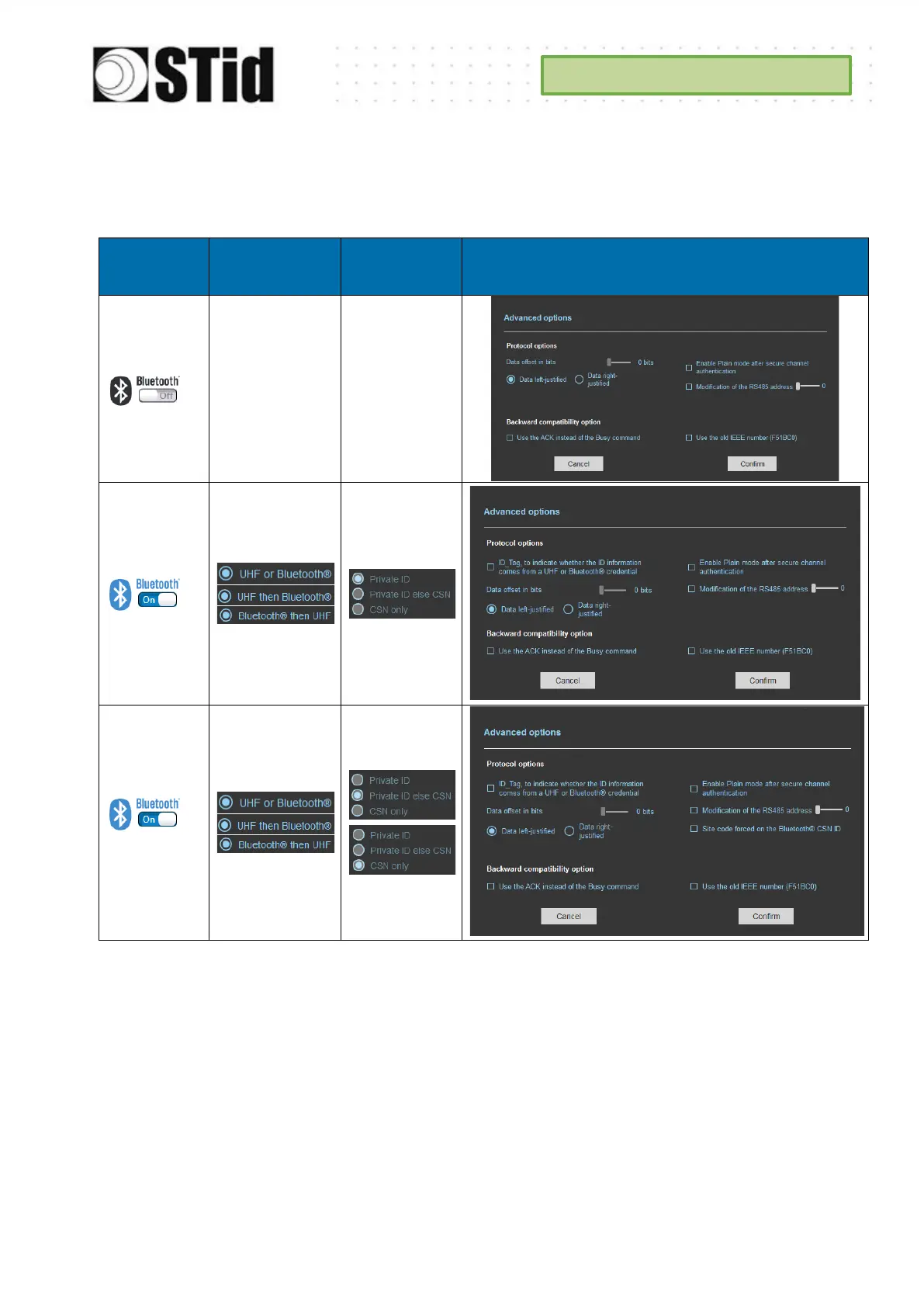The advanced options in this part depend on whether or not a Bluetooth® configuration is