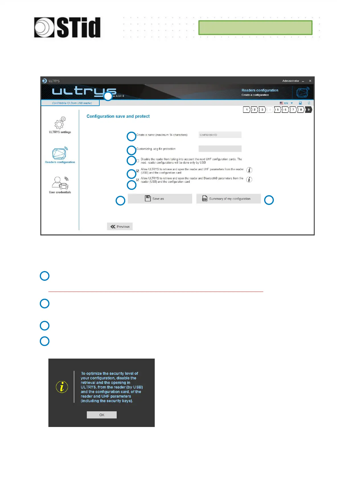 Authorize ULTRYS to retrieve and open the reader and UHF parameters from the reader and
