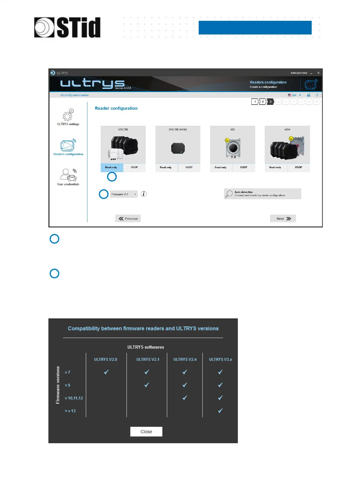 To do so, you can manually select the reader and firmware version, or you can use the function