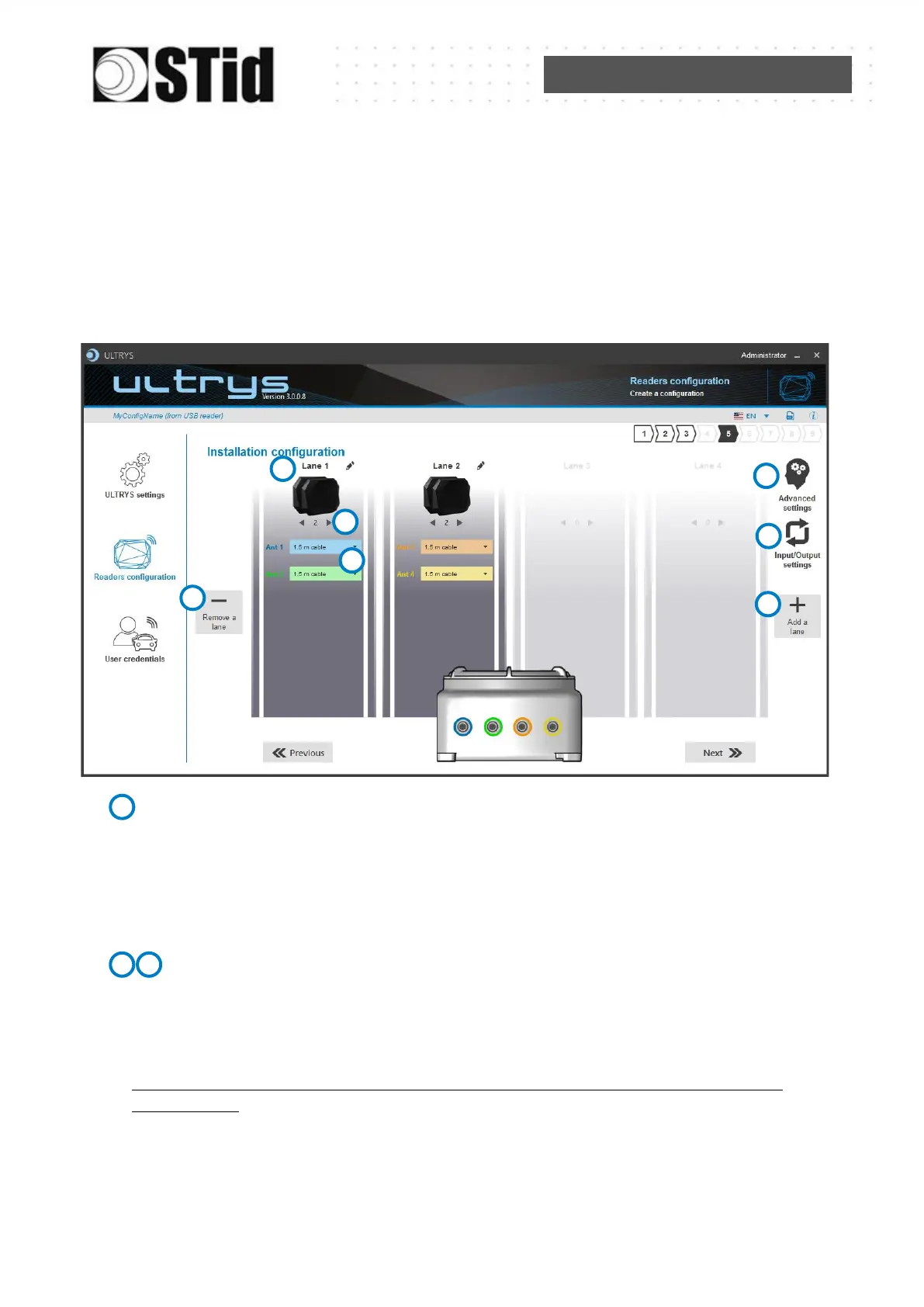 The default setting is one antenna on the first lane.