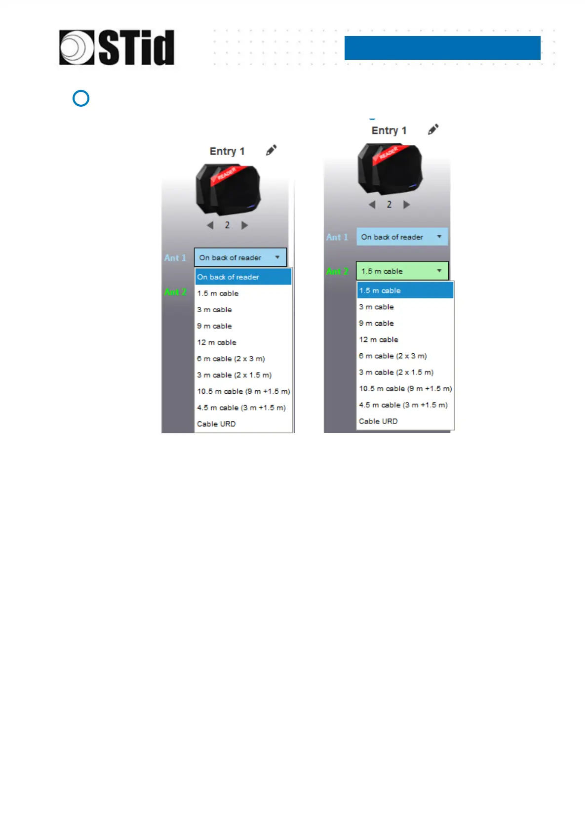 For each antenna, select the cable length you would like to use between antenna and reader.