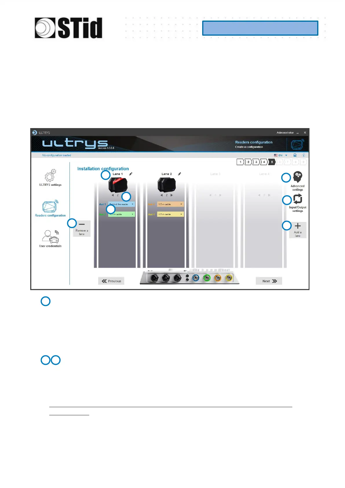 The default setting is one antenna on the first lane.