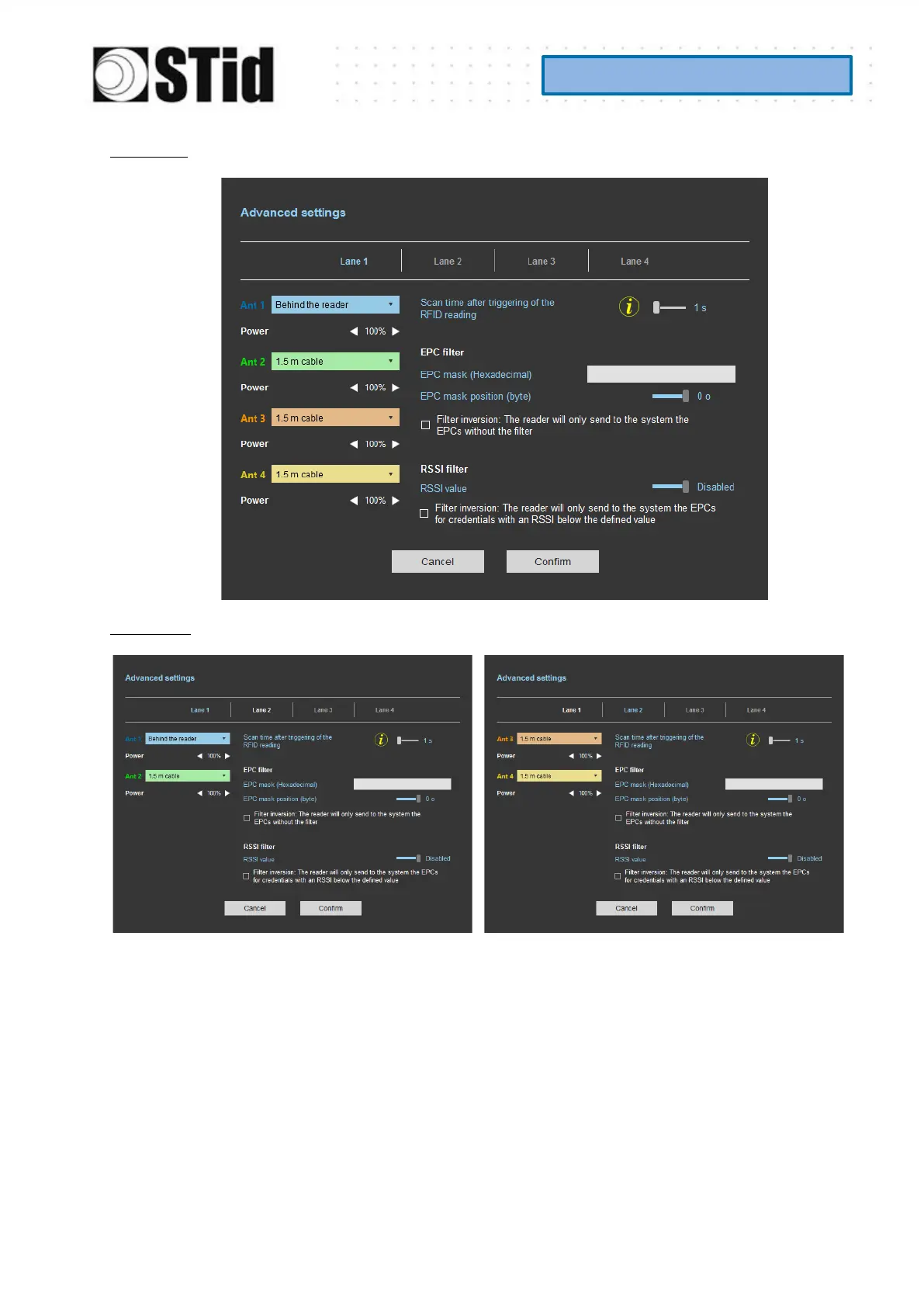 Example 2: 2 antennas on lane 1 et 2 antennes on lane 2.