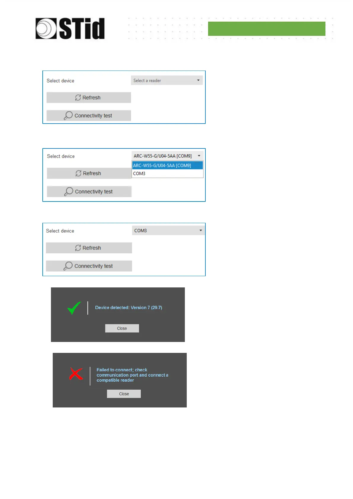Note: during the connectivity test on a UHF encoder, a sound and light signal (orange) will be