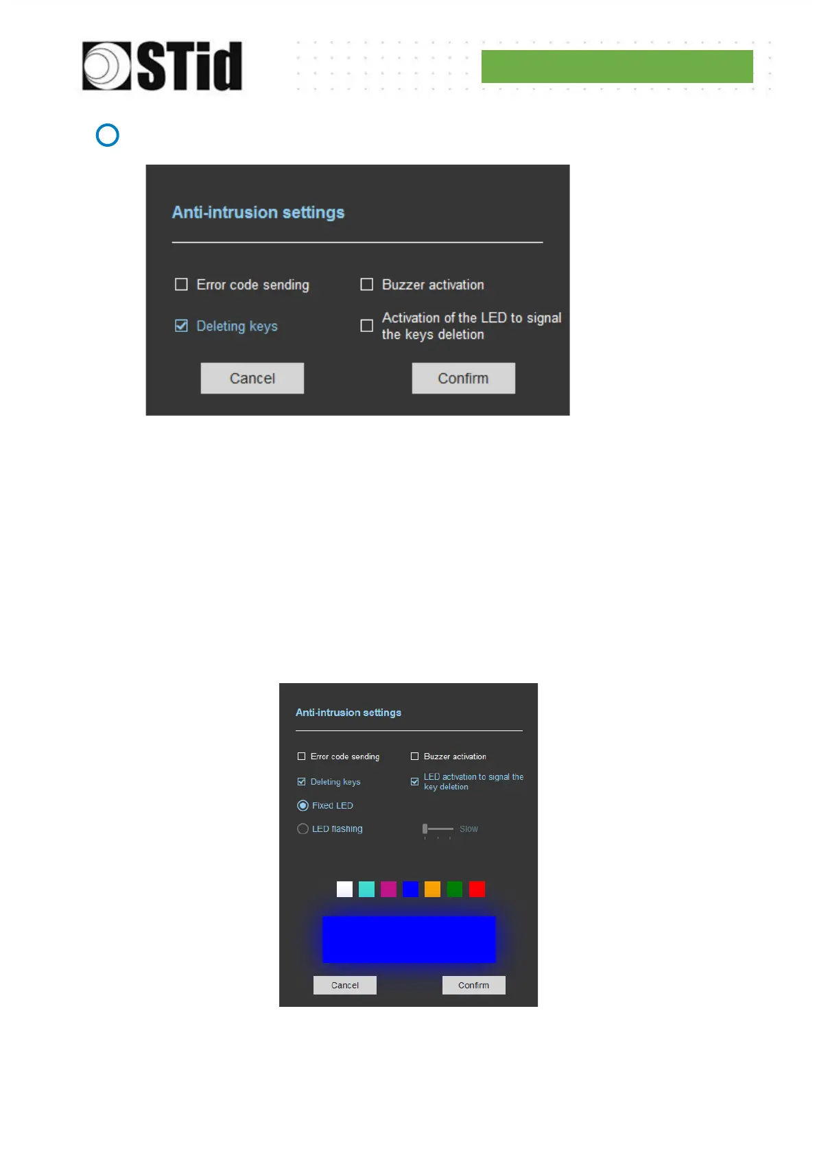 Anti-intrusion settings