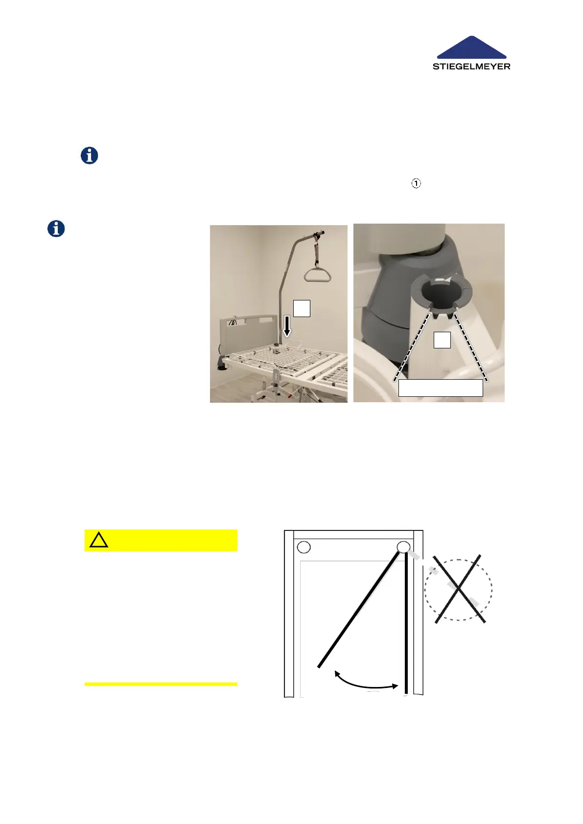 To remove the patient lifting pole, lift it out of the sleeve from above.