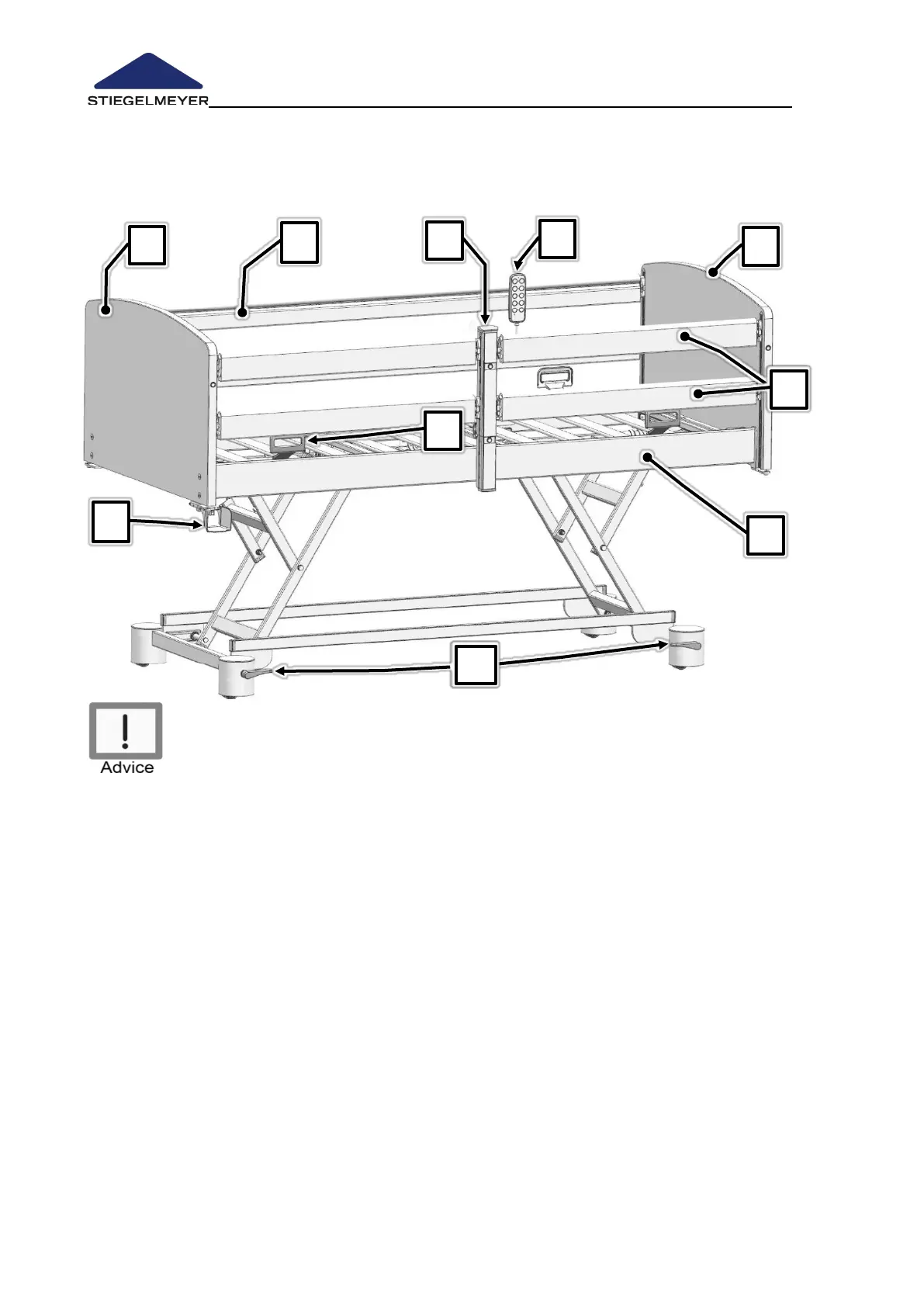 and bold type refer to the care bed’s operating devices as shown in this and the