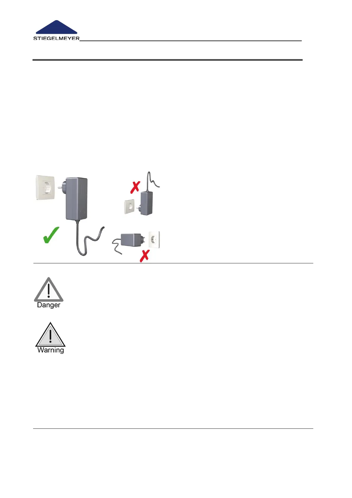 The outlet cable must hang downwards.