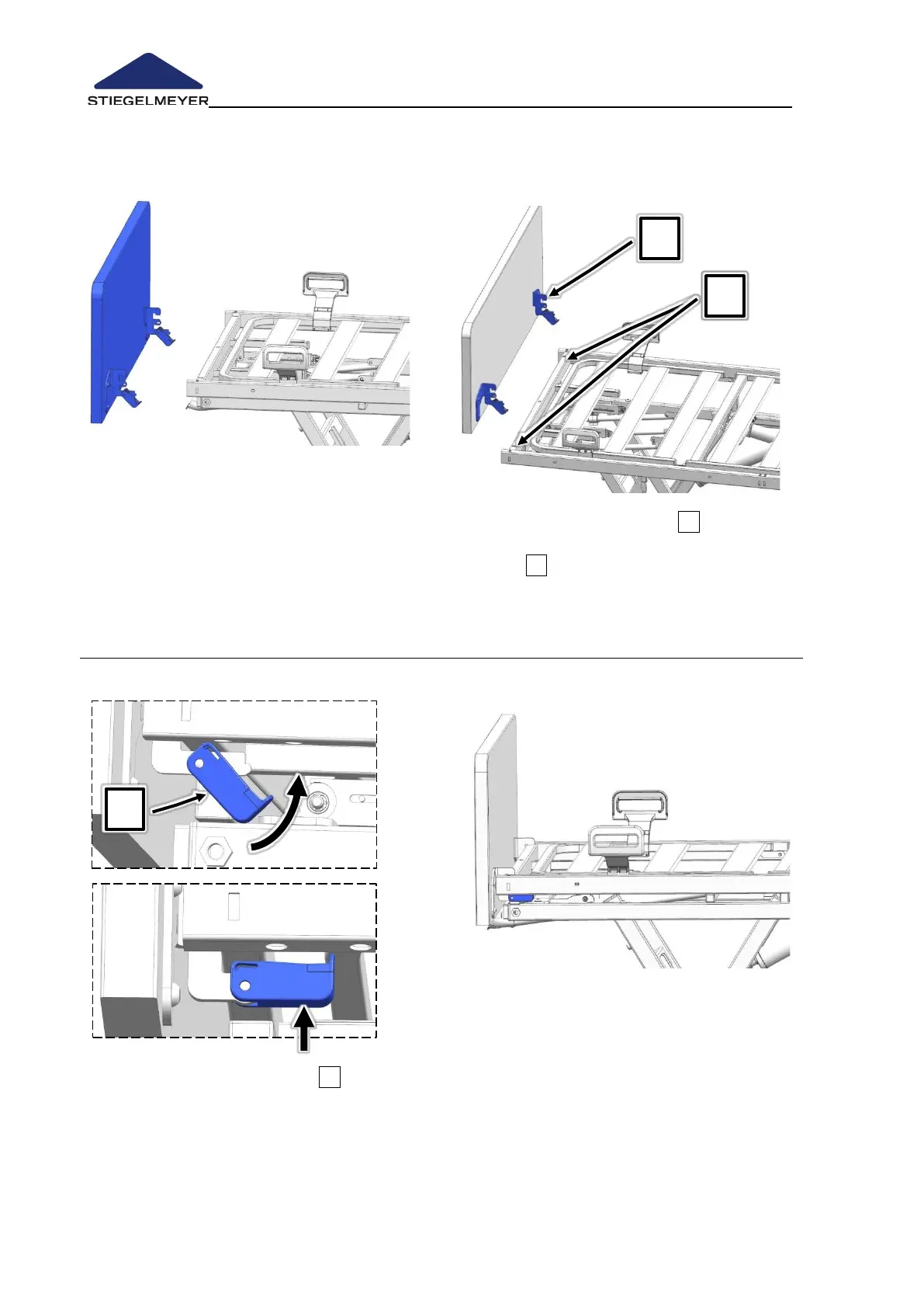 Insert the locking hooks 1 of the