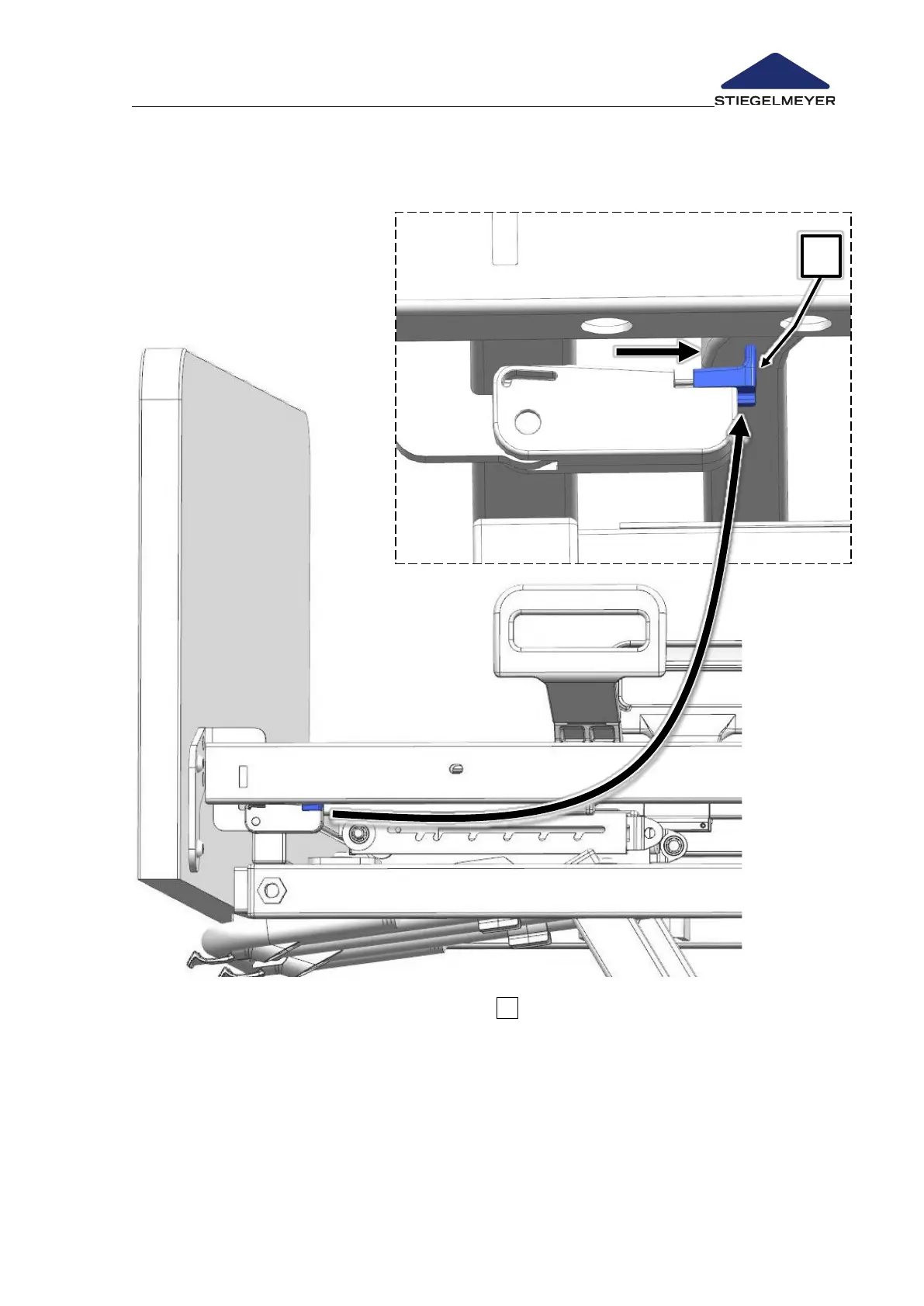 Use a finger to pull the orange safety lock 1 towards the centre of the bed and keep