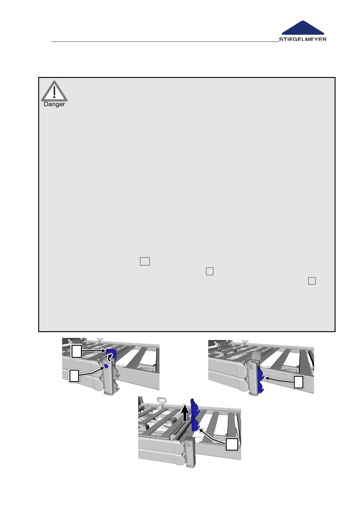 ➢ Lower the safety side guide of the safety sides (6) at the centre support completely