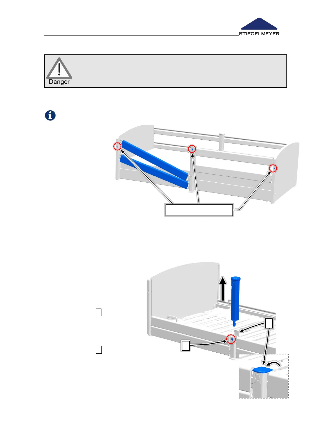 Before lowering the safety side, make sure that the resident’s limbs are not