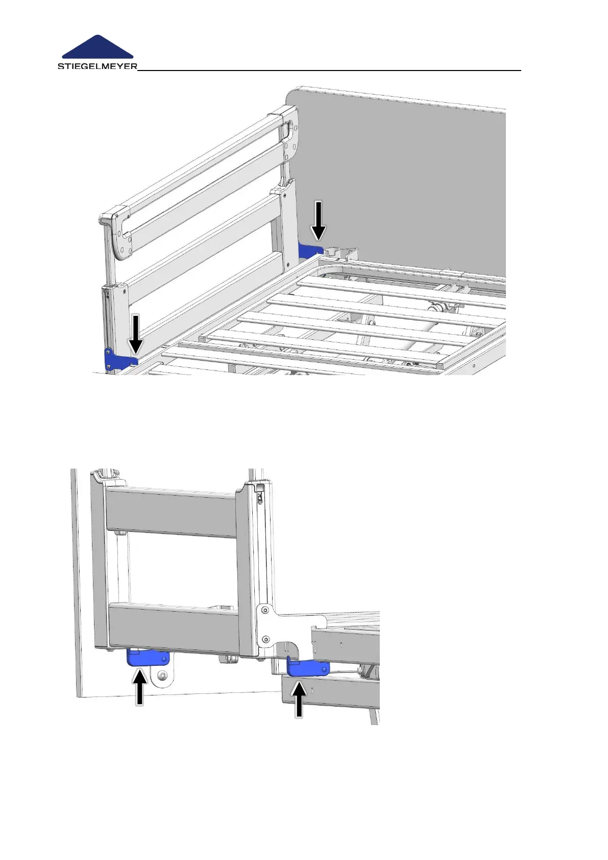 Swivel the locking lever (left and right side) upwards and press until it audibly