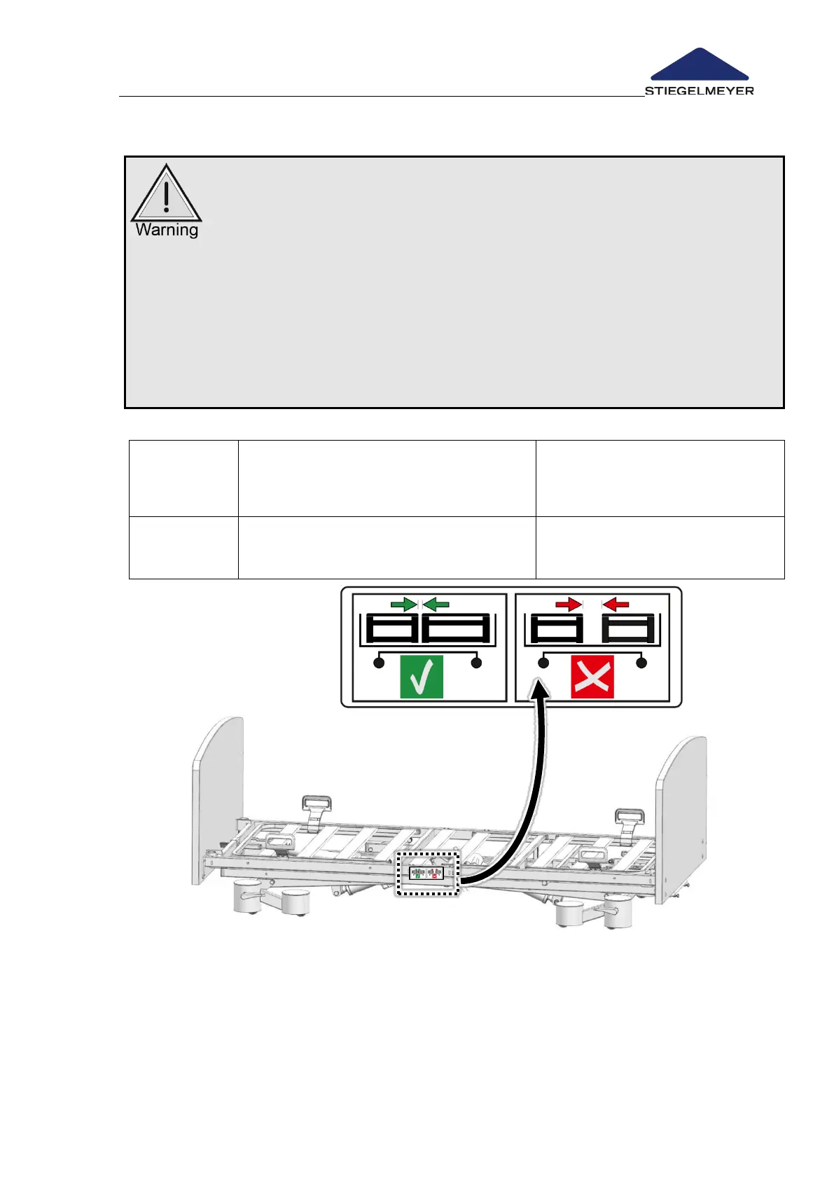 • Only install the permitted sizes of the split safety side per bed side